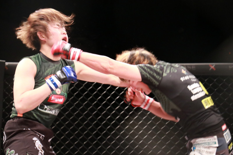 ライカのこのジャブで渡邉の顔が何度も跳ね上がる