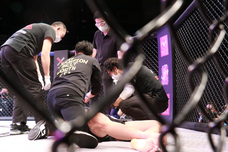 失神した三宅にセコンド、レフェリー陣が駆けつける