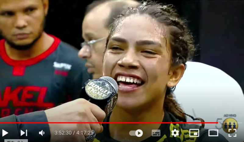 勝利者コメントで地元ファンに感謝の気持ちを述べるダナ(Jovem Pan News公式YouTubeより)