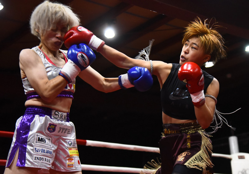 引退試合の斎藤洋子(左)にKO勝ちした伊藤咲子(右)