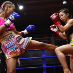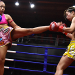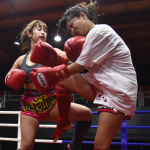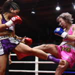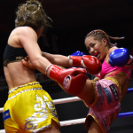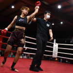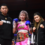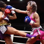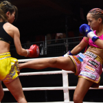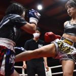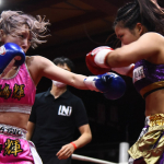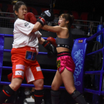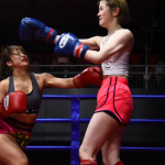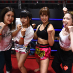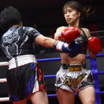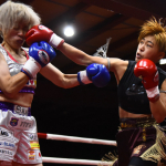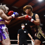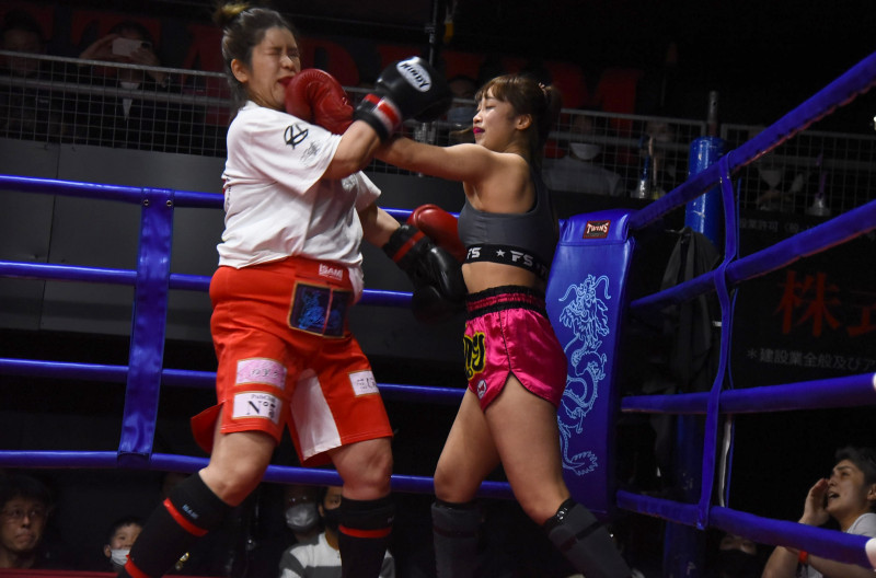 体格差がありながらも坂口杏里(左)と打ち合うKAREN(右)