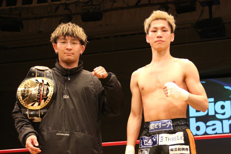 勝利した田中は、6月に龍斗(左)の持つフェザー級王座へ挑戦する