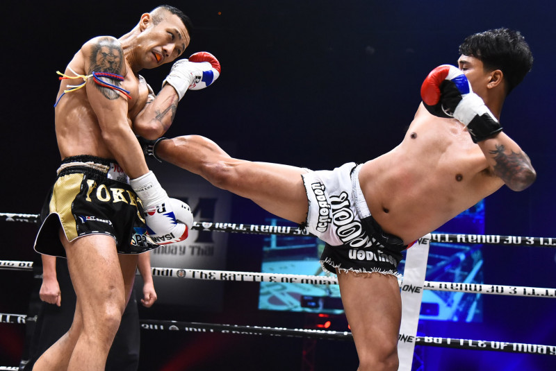 蹴りで寄せ付けずMIKE JOE(左)を判定で下したヨックペット(右)