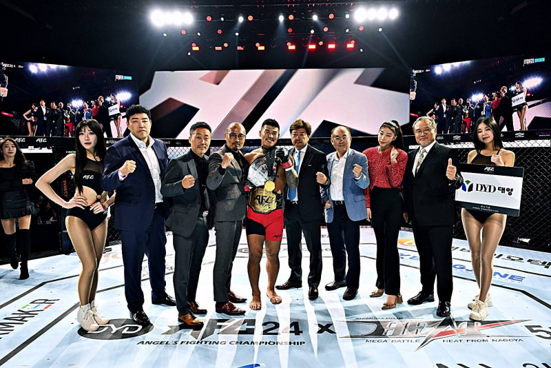 ソクヒョン(中央)がACF王座防衛とHEAT王座獲得を果たした