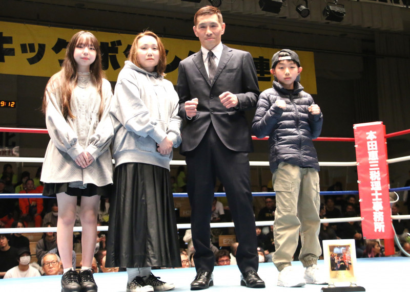 笹谷淳の引退セレモニーが行われ、家族との記念撮影