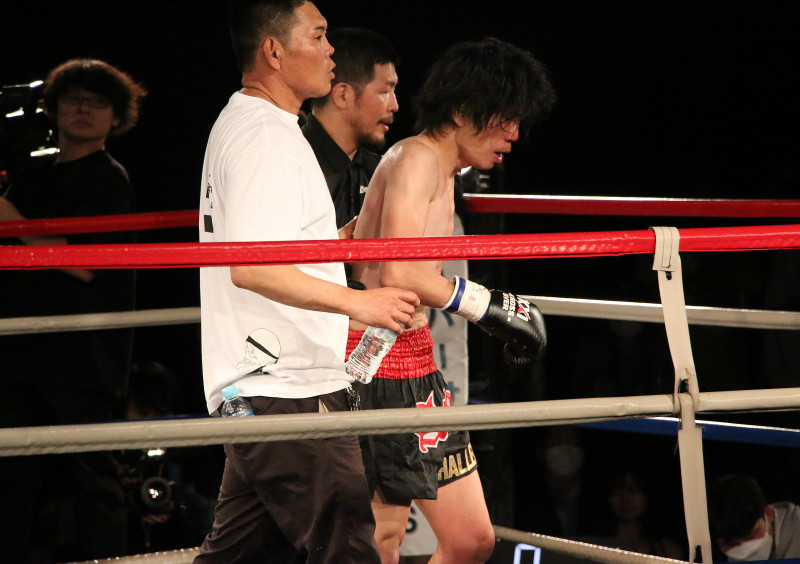 自らの足でリングを去る立嶋