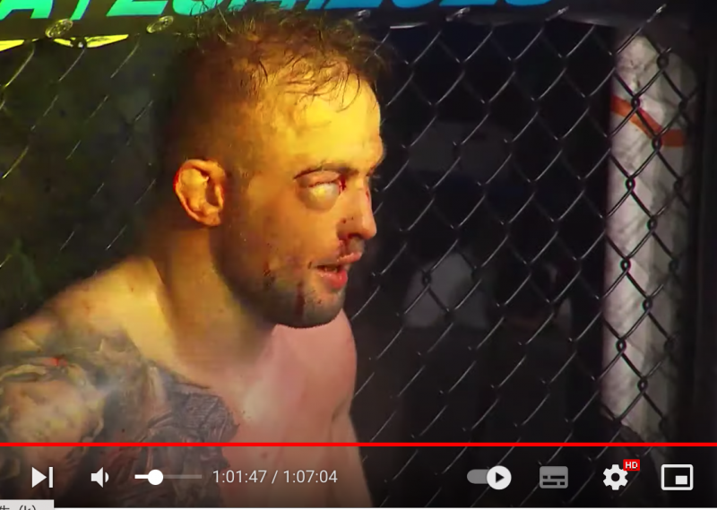 右目下が大きく腫れ上がるブロンツェル(OKTAGON MMA公式YouTubeより)