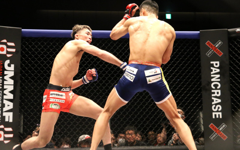 田嶋はパンチを放っていったが距離が遠く単発だった