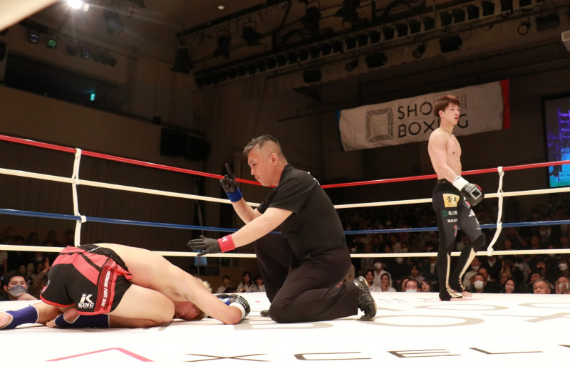 笠原がダウンを奪う