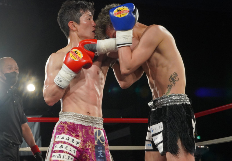 左ヒジで遊羅(右)をKOした元山(左)