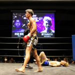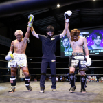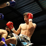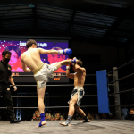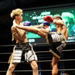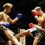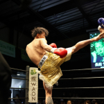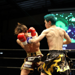 互いに蹴りを出し合う