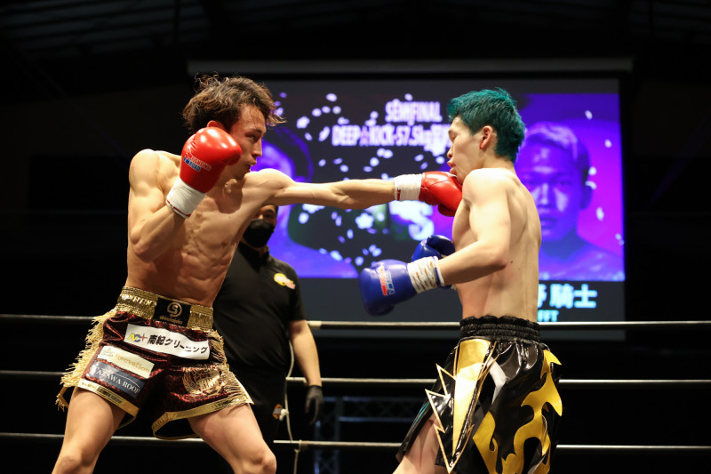 ジャブを放つ岩KING(左)