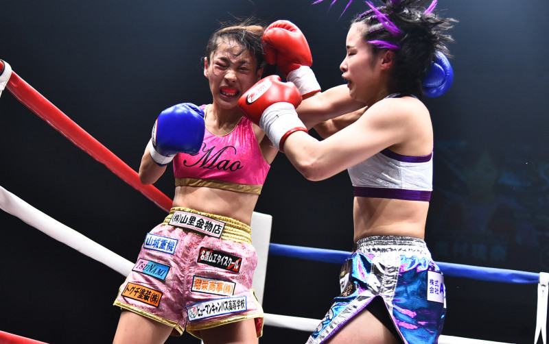 山里真桜(左)に判定勝ちした奥村琉奈(右)