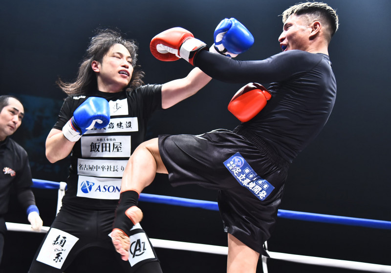 打ち合いを見せるエイリアンニキ(右)とメガネ社長(左)