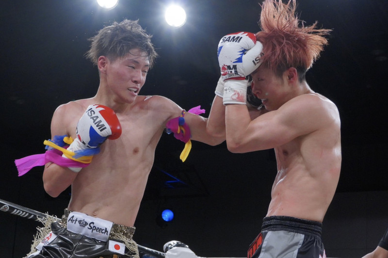 堀 凌生(左)が的確にパンチを当てて勝利、王座を戴冠した