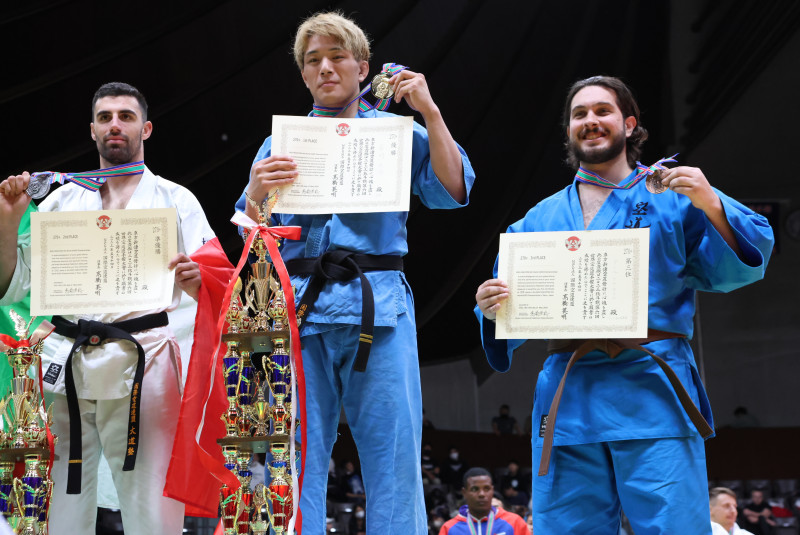 優勝した岩崎(中央)