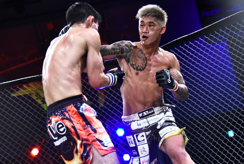 パンチで攻める小島
