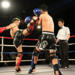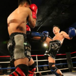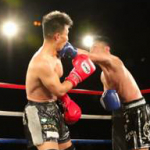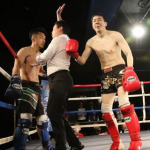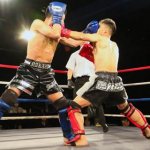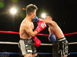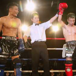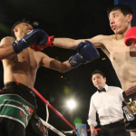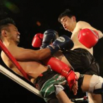 ナカザ(右)の左ストレートが荻原(左)のアゴにヒット