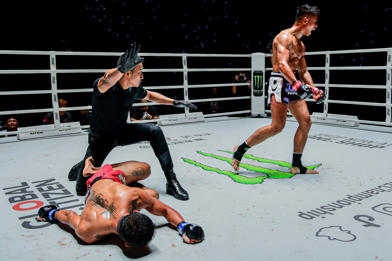 相手のタイは吹き飛ぶようにダウン©️ONE
