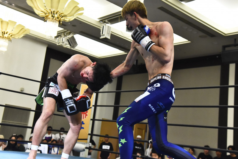弘樹(左)に判定勝ちした土井(右)