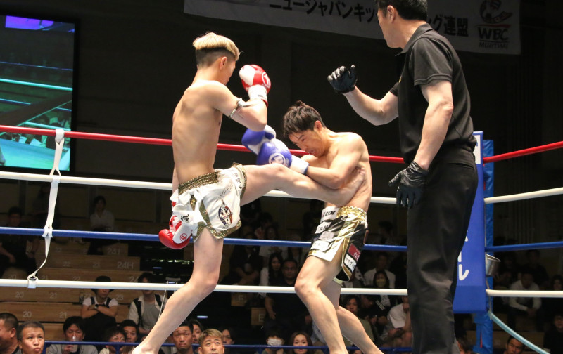 嵐は左ボディから前蹴りでダウンを奪った