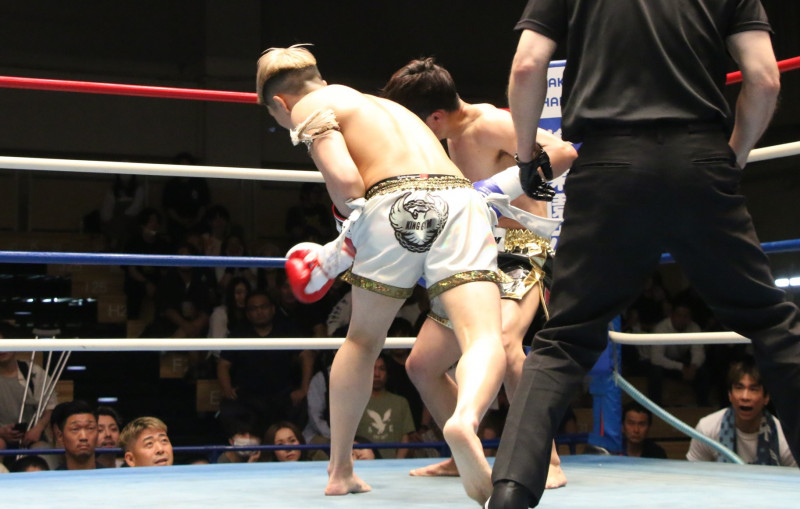嵐はパンチの連打でダウンを奪った