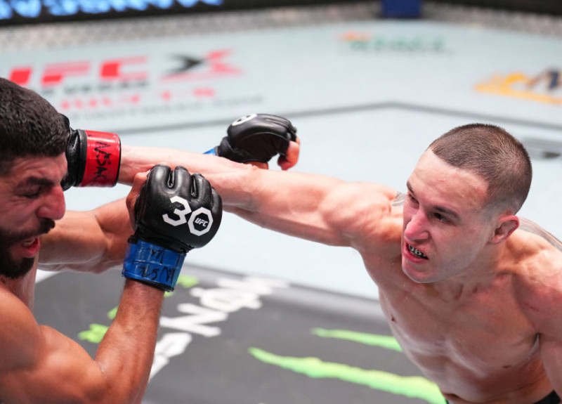 手数の多さではアルバジ(左)を圧倒したカラフランス(右)だったが...©️ufc