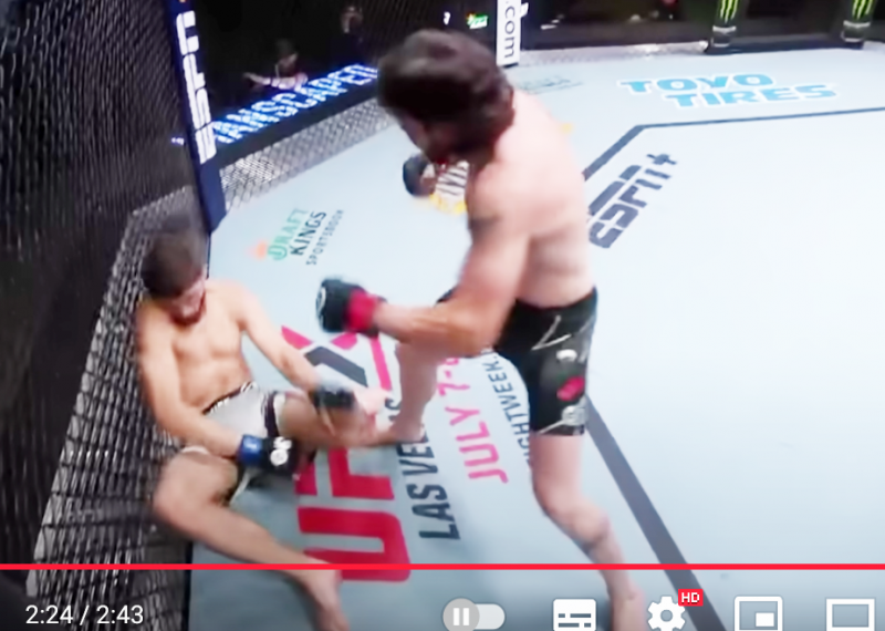 レジェンドのジム・ミラーが豪快失神KO!、相手は金網に体打ち付け失神(@UFC YouTubeより)