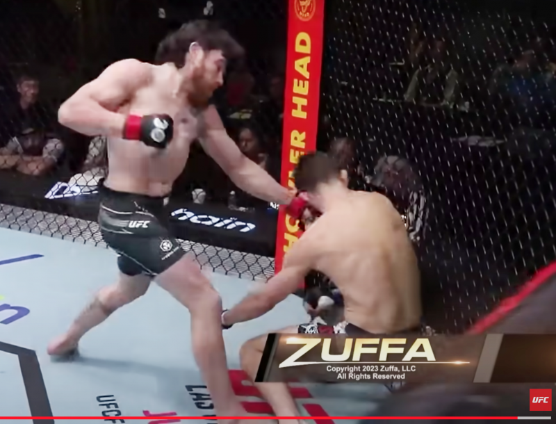 続いて左アッパーがヒット!@UFC youtubeより