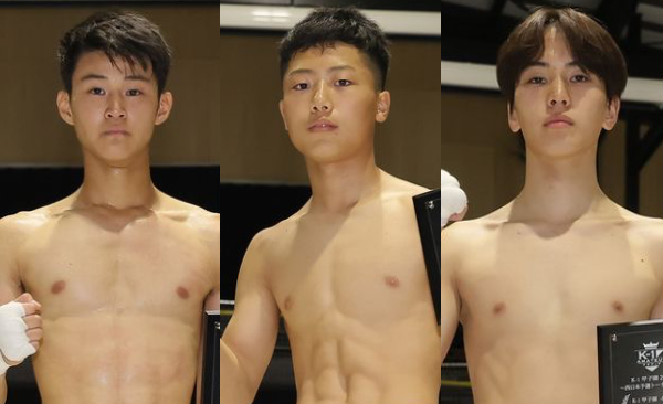 (左から)優勝した新井真惺、細濱 辰、野中大翔 (C)K-1