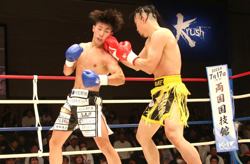 新美はこの右を入れて左のパンチでダウンを奪った