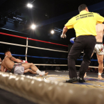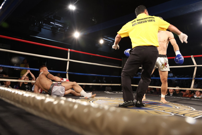 2度目のダウン、なかなか立ち上がれないシュートン