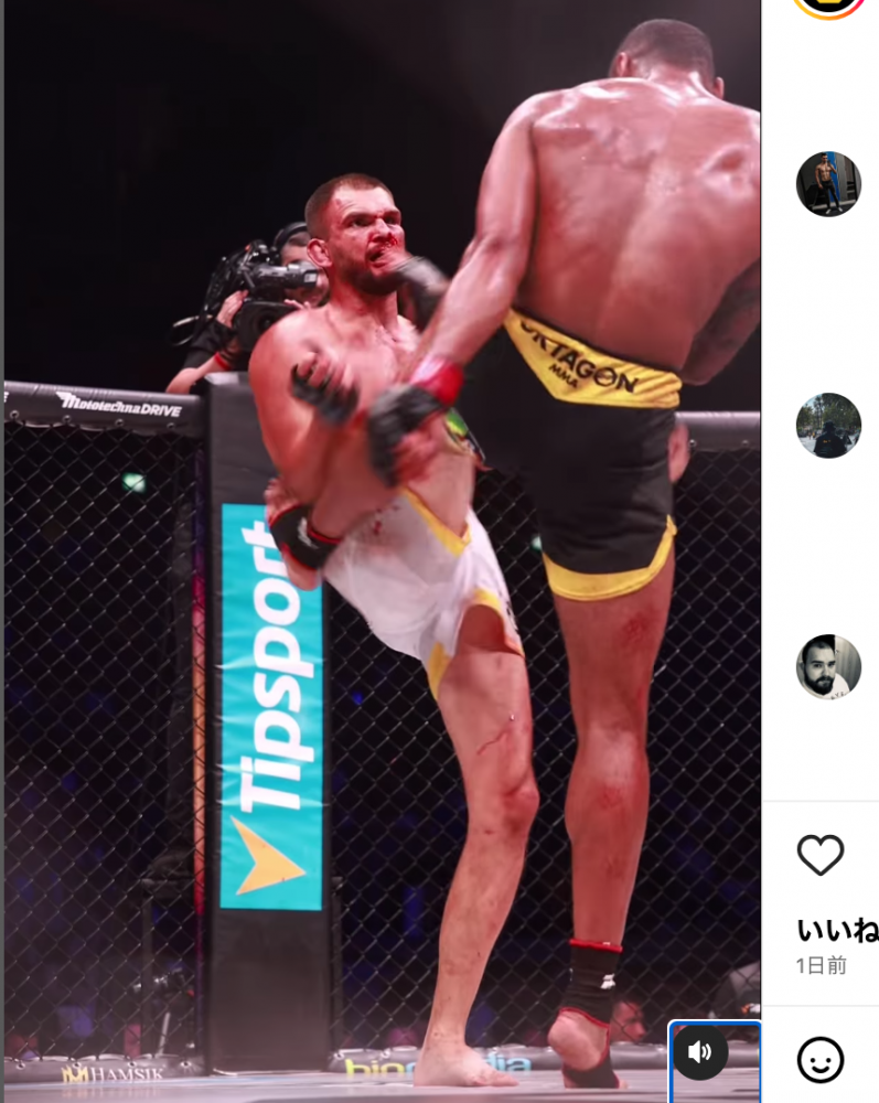お互いの蹴りがぶつあった後、苦悶のストルゼルチェイク@oktagonmmaより