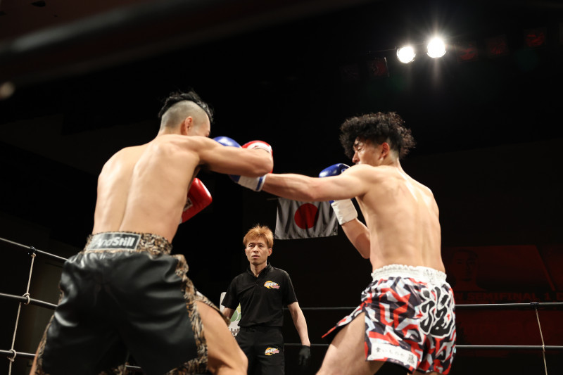 パンチを放つ竹内皇貴(右)
