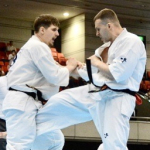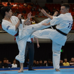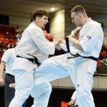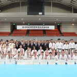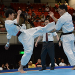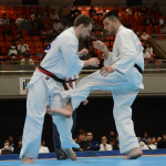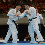 飯塚翼(右)が同じ城北支部の山上大輝を破って2階級制覇=男子中量級