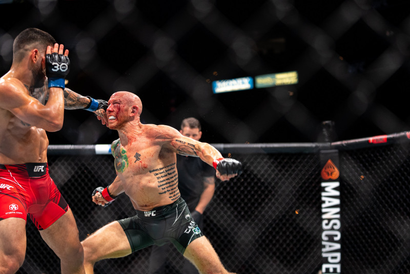 血を流しながらパンチを振るエメット©️UFC