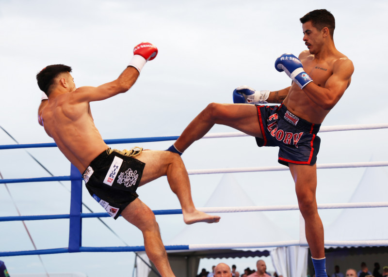 ヘススが前蹴りでT-98を吹っ飛ばす