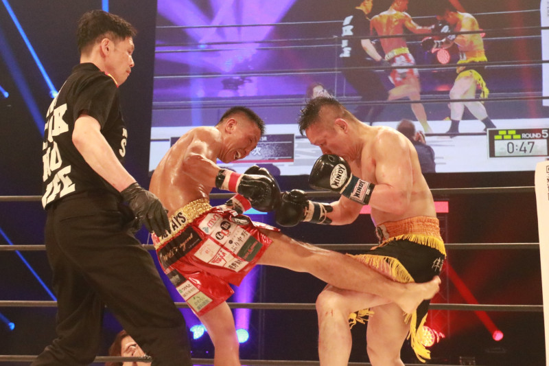 KOブローとなった勝次の右ローキック