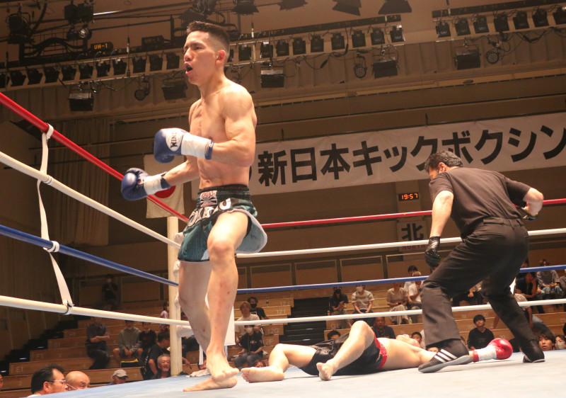 NJKFランカー坂本(左)が、代打のサマットをKO撃破
