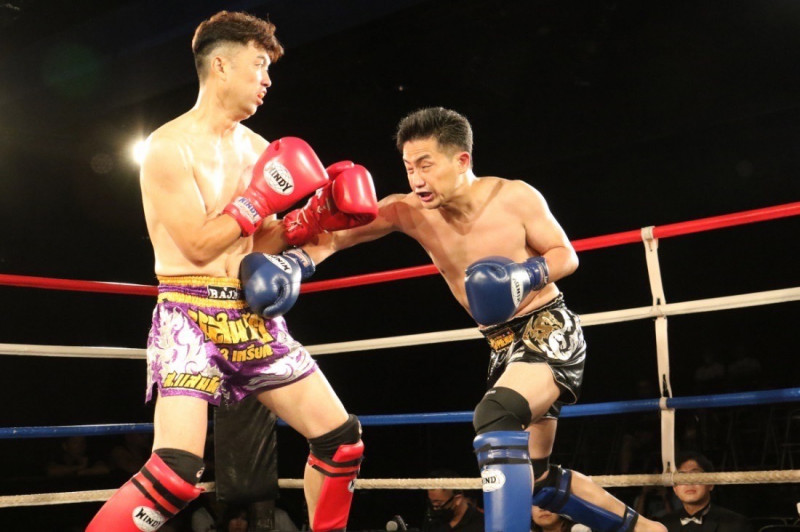 榊(左)のボディに木本(右)の右ストレートがヒット