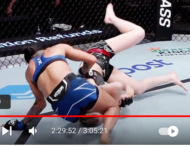 ヌネスのマットについた左腕の肘がくの字に(UFC JAPAN 公式YouTubeより)