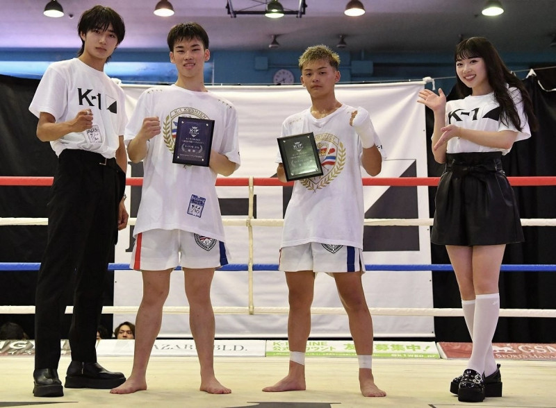 PR大使の大久保琉唯(左端)と応援サポーターの小浜桃奈(右端)も来場 (C)K-1