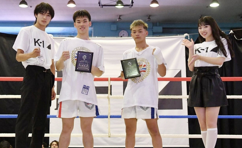 PR大使の大久保琉唯(左端)と応援サポーターの小浜桃奈(右端)も来場 (C)K-1
