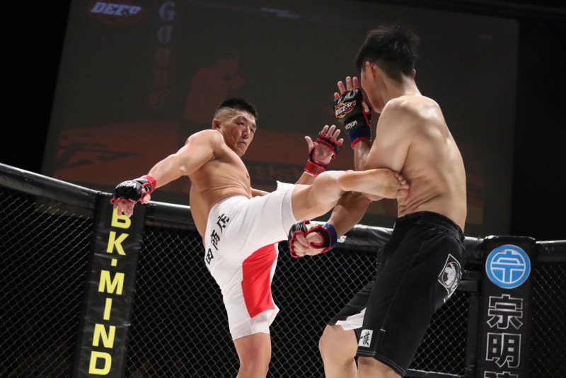 山田がミドルキックを蹴り込む