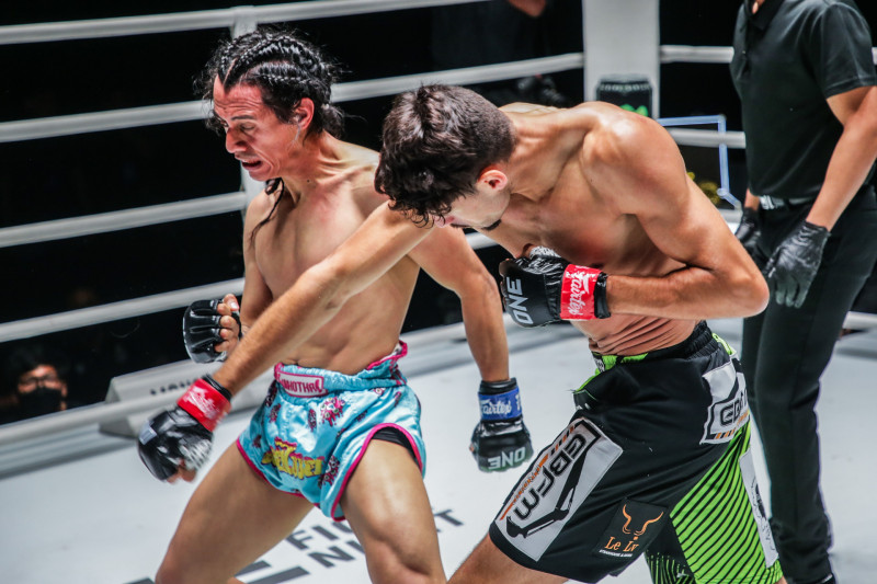 電光石火の連続攻撃で初回KO勝利を飾ったマムーディ(右)©️ONE
