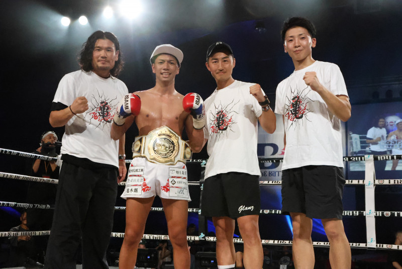 亀本勇翔(左から2番目)が王座戴冠、山崎秀晃(右から2番目)もセコンドに
