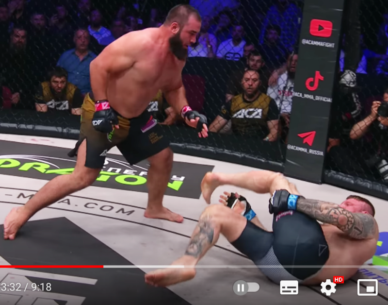 完全にくの字に折れ曲がっている(ACA MMA公式YouTubeより)