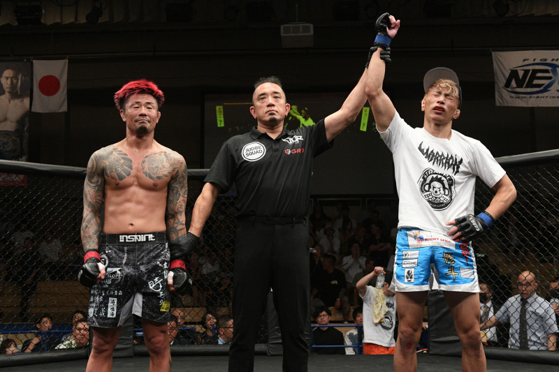 勝ち名乗りを受ける渡部