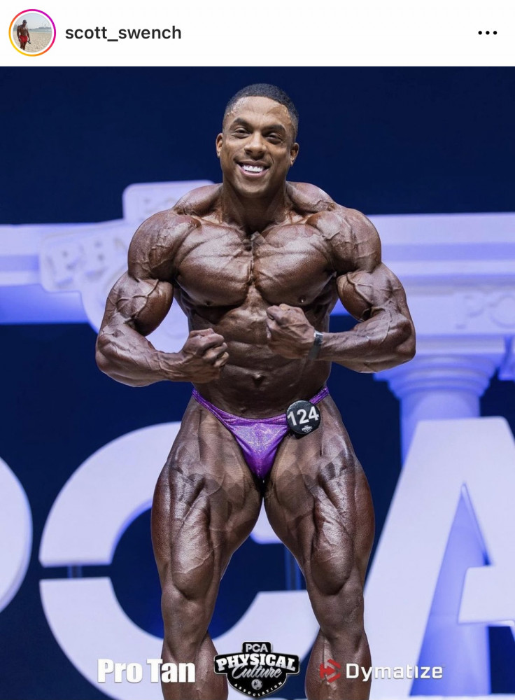 ボディビル大会でポージングするスウェンチ @scott_swench