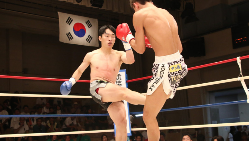 チャンはカーフキックで攻撃